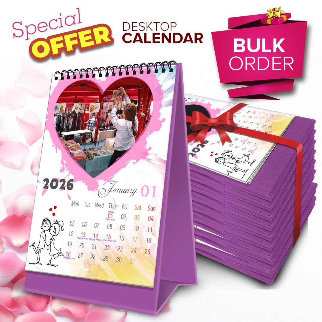 2026 Personalized Desktop Calendar |Table top Photo Calendar | 7 x 5 Inches Vertical | Bulk order Design 01