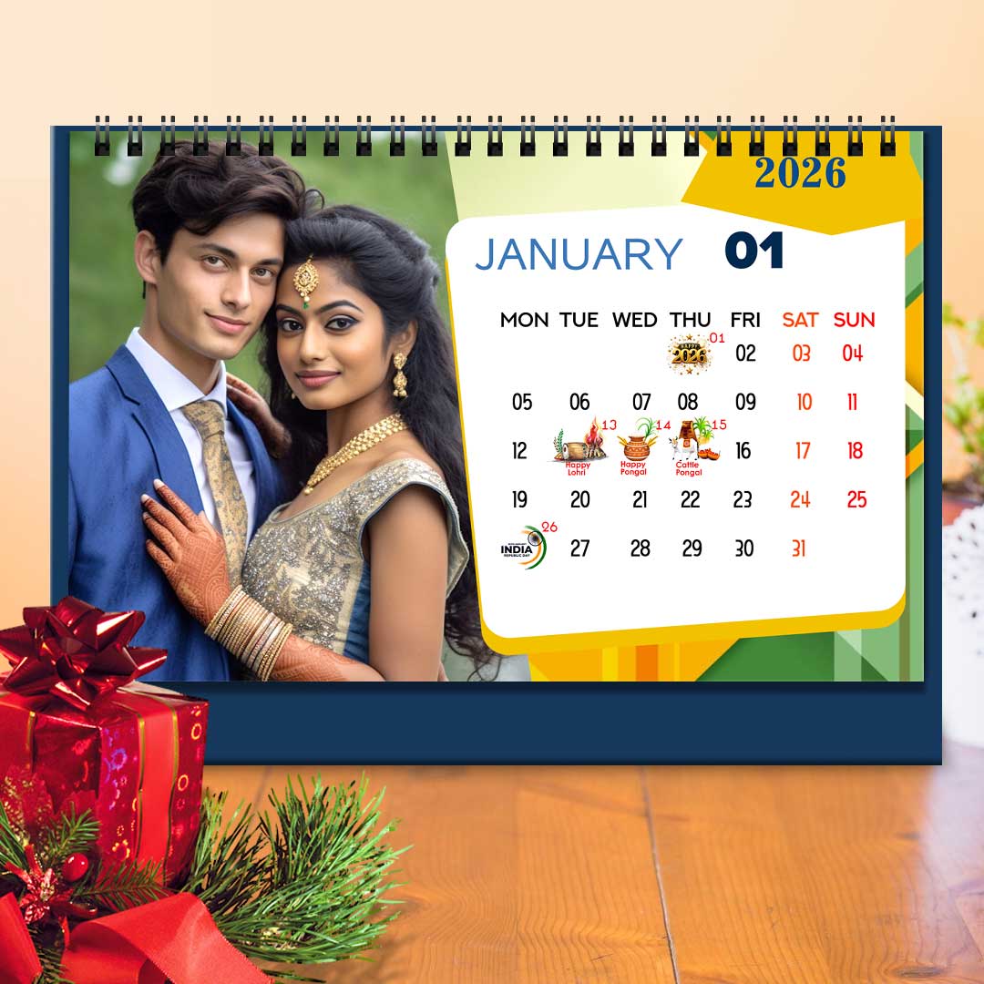 2026 Personalized Desktop Calendar |Table top Photo Calendar | 7 x 5 Inches Horizontal Design 01