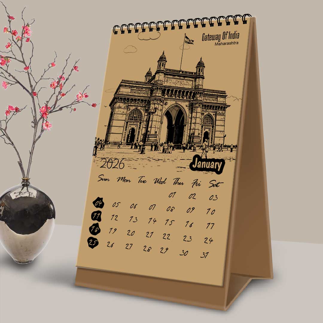 2026 kraft calendar |Travel Calendar Tabletop | Indian Famous Places Desktop Calendar.