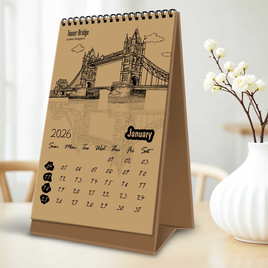 2026 Kraft calendar |Travel Calendar | UK Famous Places Desktop Calendar.