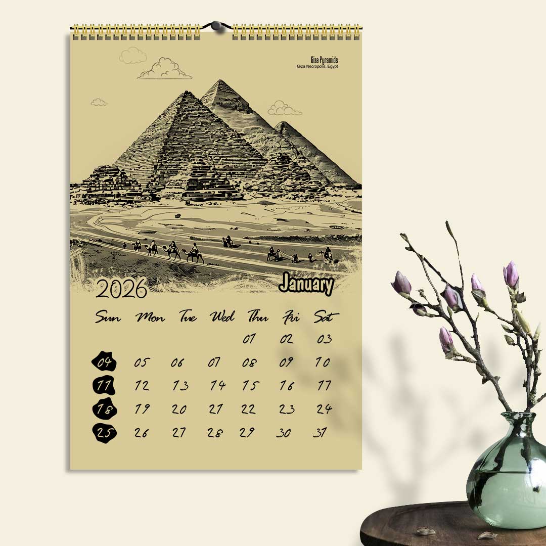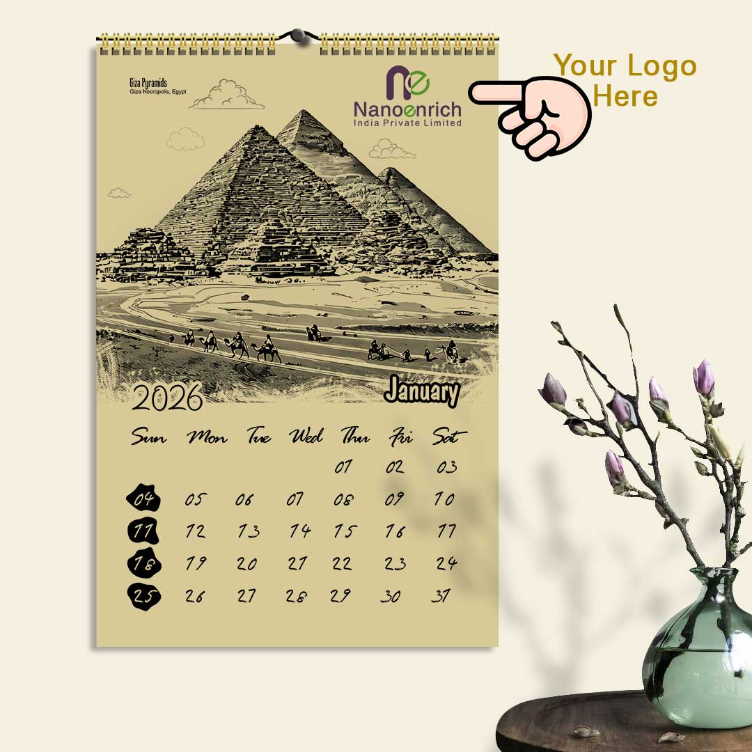 Travel across World without leaving your wall! Our 2026 World Famous Places Calendar showcases 12 iconic destinations from royal palaces and ancient temples to tranquil coasts and mountain views. Printed on premium kraft board, it carries a natural tone which adds elegance to any space. Let every month remind you of World’s diversity, beauty, and magic a true celebration of travel and tradition.