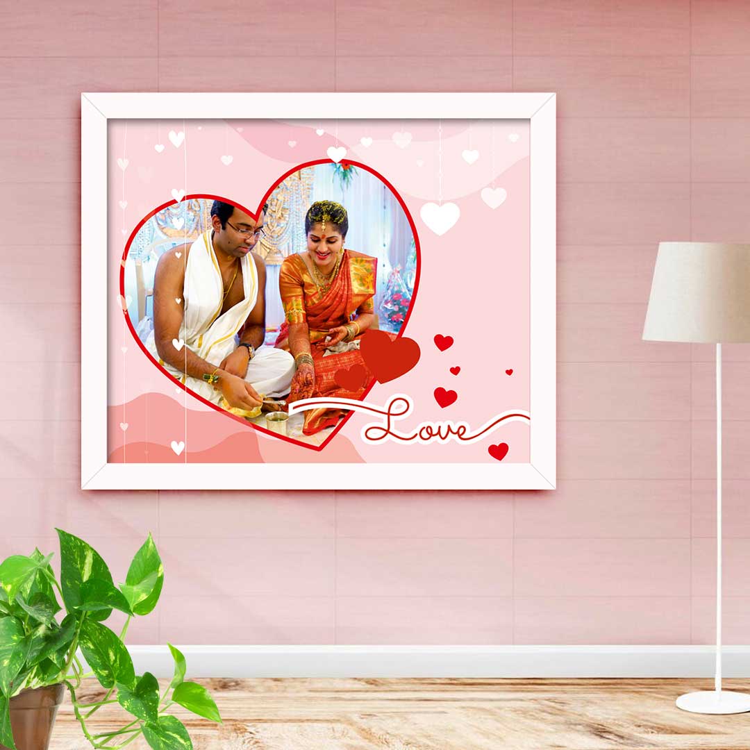 Celebrate your love with Photoland’s marriage photo frames. The perfect wedding gift photo frame for couples or a romantic first anniversary gift for wife. Our frames are fully Customizable, made from a sleek 0.7-inch synthetic material with a premium photo Print, and a Wall Hanging Option. A beautiful keepsake for your wedding photos.